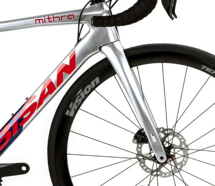 “Mithra-Disc 105”, Shimano 105 grup seti ve disk frenlere sahip Bisan tarafından sunulan bir yol bisikleti modelidir. Bu, jant fren modellerine kıyasla her türlü hava koşulunda gelişmiş durdurma gücüne sahip modern bir performans yol bisikleti olmasını sağlar.